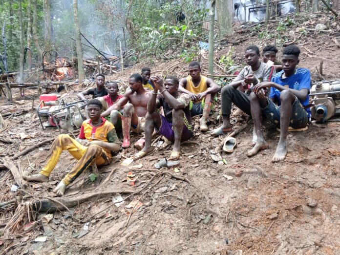 Ten individuals have been arrested for engaging in galamsey activities within the protected Boin Forest Reserve in the Aowin Municipality of Ghana’s Western North Region.
