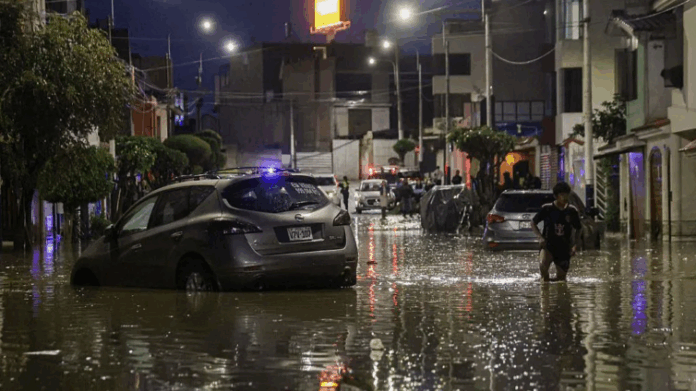 Torrential rain has caused intense flooding across Peru’s Arequipa region causing mudslides, flooded streets and homes and trees to collapse.