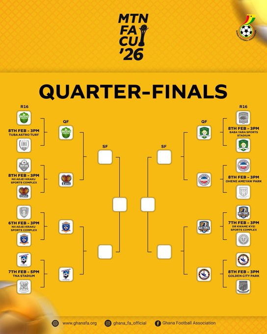 The Ghana Football Association (GFA) is expected to announce the official dates for the quarterfinal matches in the coming days.