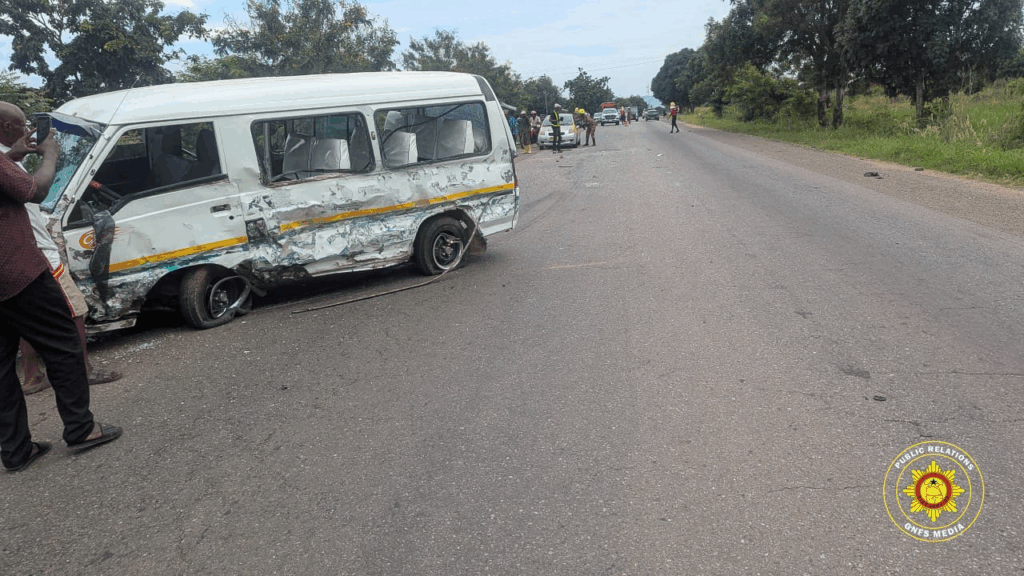 The accident, which occurred at Okwenya, involved a Toyota Hiace with registration number GE-9739-24 and a Hyundai H100. Both vehicles were badly damaged in the collision.