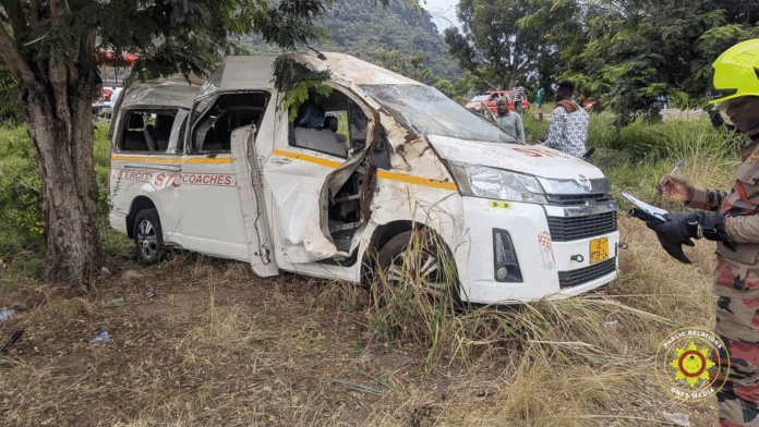 The accident, which occurred at Okwenya, involved a Toyota Hiace with registration number GE-9739-24 and a Hyundai H100. Both vehicles were badly damaged in the collision.