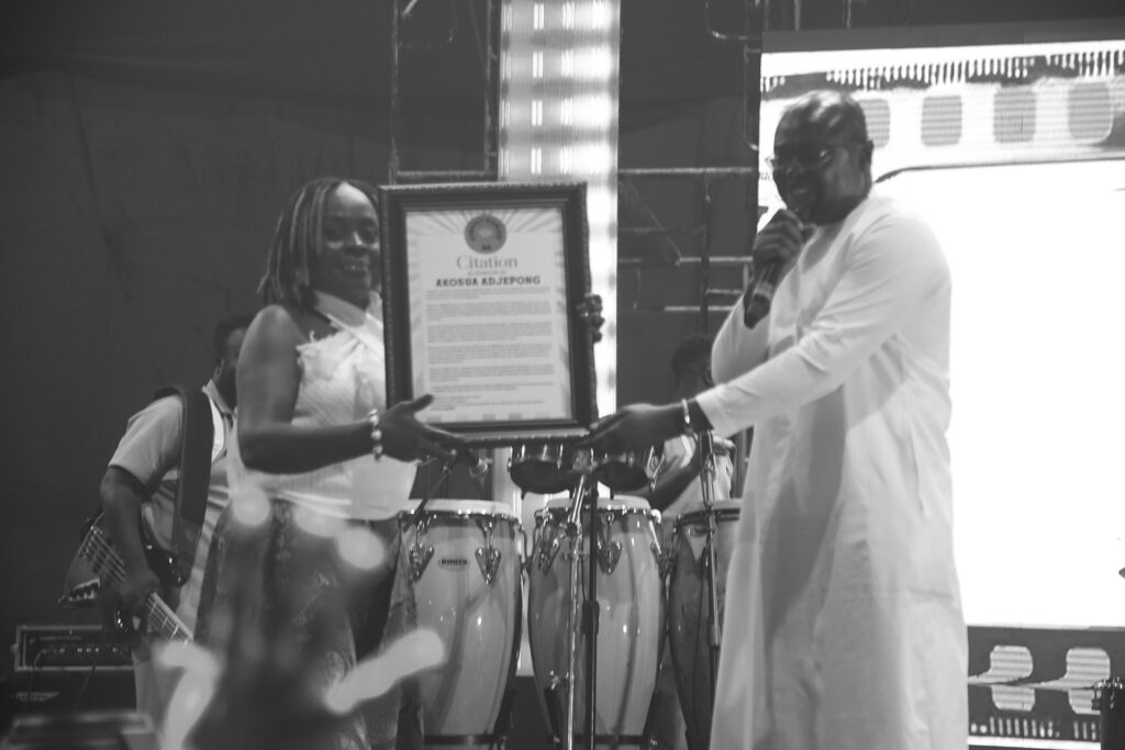 Akosua Agyapong, whose voice and music have defined generations, was celebrated for her unmatched impact on Ghanaian highlife. Her enduring hits and inspiring career have made her a pillar of the genre, and the citation reflected her lasting influence on both fans and fellow musicians.