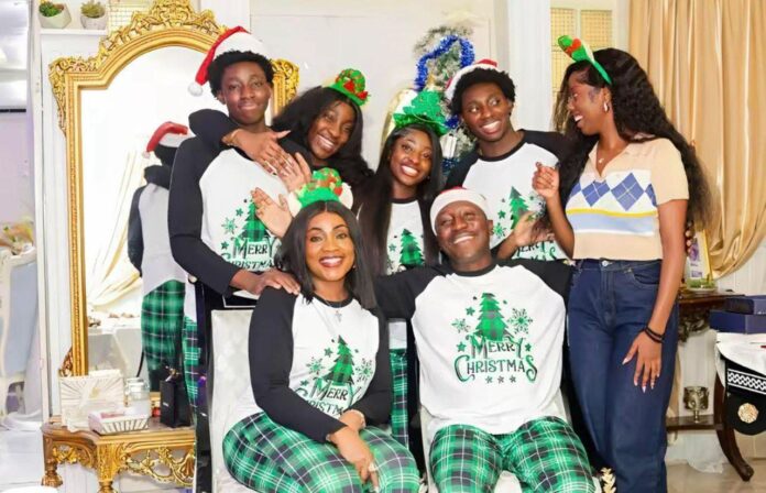 Dressed in matching pyjamas, the family was seen smiling broadly as they posed inside their residence, reflecting a close-knit bond and relaxed Christmas mood.