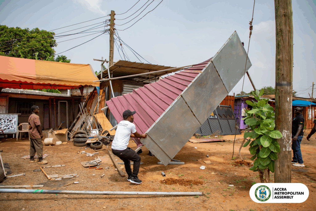 The Accra Metropolitan Assembly (AMA) has commenced a citywide exercise to clear unauthorised structures from road shoulders and government-reserved lands across the capital.