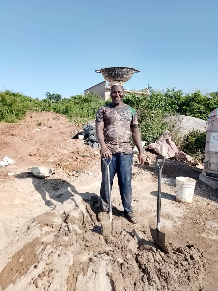 Dzawu Victor, one of the beneficiaries engaging in labourer work on campus to pay fees