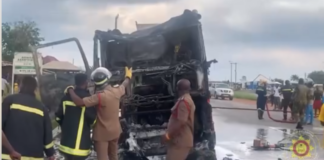 Fuel tanker bursts into flames on Kumasi-Accra highway [Photos]