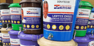 Bekwai parliamentary aspirant donates Veronica buckets, sanitisers to constituency
