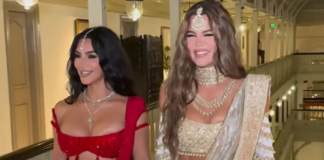 Kim and Khloé Kardashian sparkle in traditional Indian outfits at Ambani...