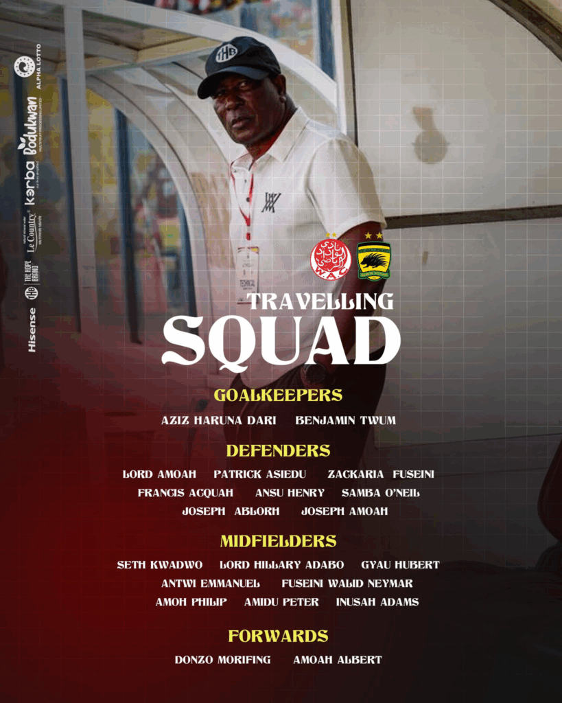 Zito’s defensive setup includes Patrick Asiedu, Zackaria Fuseini, Francis Acquah, Samba O’Neil, and Joseph Amoah, while the midfield will be anchored by experienced figures such as Lord Hillary Adabo, Gyau Hubert, and Fuseini Walid Neymar. Youngsters Amidu Peter and Inusah Adams have also been included to add energy and creativity.