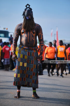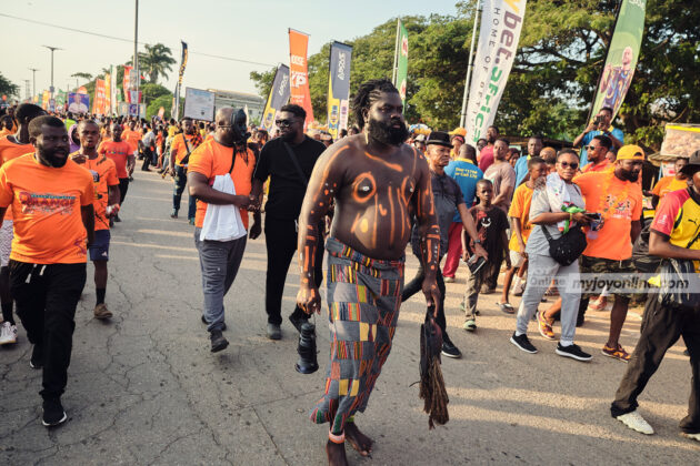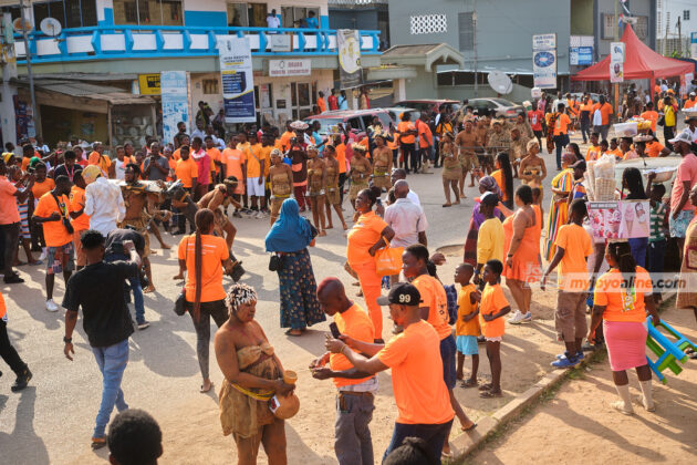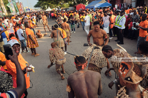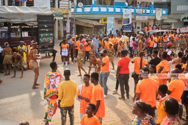 Dressed in bright orange, crowds of locals and visitors from across Ghana and beyond flooded the streets to partake in the festivities.