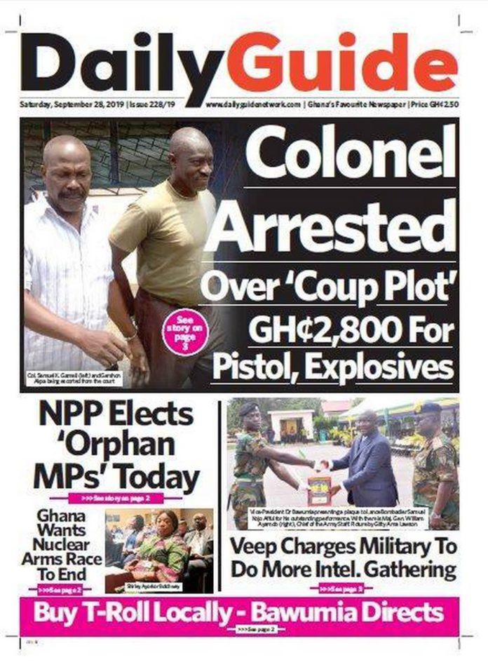 Check out the Weekend’s Newspaper Headlines Newspaper Headlines September 28, 2019 11:10 am - Audio By Carbonatix FacebookWhatsAppTwitterTelegramEmailPinterestPrint Previous articleAsempa FM’s ‘Eko Sii Sen’ is CIMG Radio Programme of the YearNext articleNo ‘bastards’ in Ghana: If you call someone ‘bastard’ you can be jailed – Judge RELATED ARTICLES Newspaper Headlines Newspaper headlines: Monday, November 24, 2025 Newspaper Headlines Newspaper headlines: Friday, November 21, 2025 Newspaper Headlines Newspaper headlines: Thursday, November 20, 2025