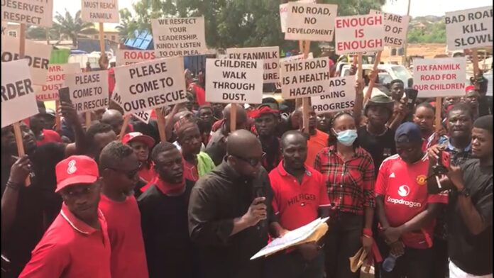 Residents of the FanMilk enclave in Anyaa Sowutuom, Ga Central Municipality, have taken to the streets in a peaceful demonstration to express frustration over deteriorating infrastructure in the area.
