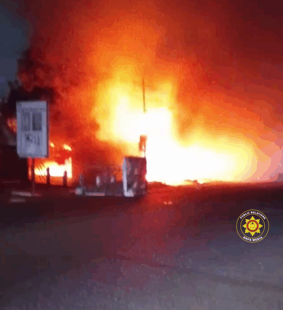 In a Facebook post, the GNFS said it received a distress call at 12:01 a.m. However, due to a faulty fire engine at the nearby Kasapreko Fire Station, the Tema Motorway Fire Engine was dispatched as the base pump.