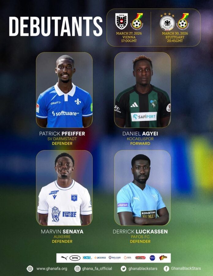 Otto Addo, head coach of the Ghana national football team, has included four debutants in his latest squad for Ghana’s upcoming international friendlies against Austria national football team and Germany national football team.