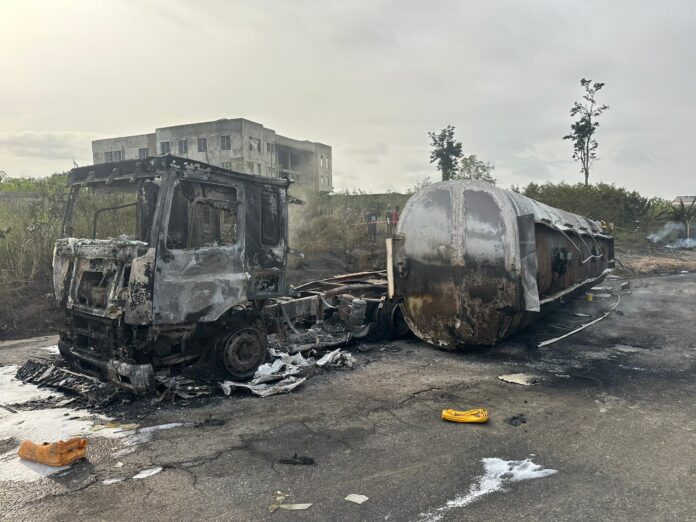 A devastating road traffic accident at Okanta, off the Nsawam–Accra Highway, has claimed the lives of four people, with seven others injured after multiple vehicles caught fire in the early hours of Saturday.
