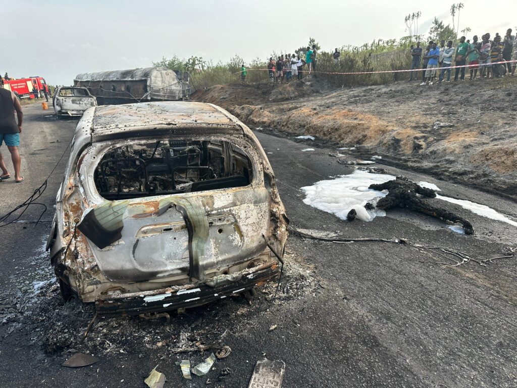 The crash involved a fuel tanker, a VVIP bus, and three additional vehicles, which were all burnt beyond recognition.