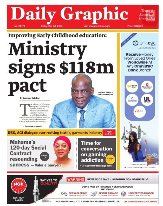 Friday May 30 2025 Newspaper Headlines Newspaper Headlines May 30, 2025 7:24 am - Audio By Carbonatix FacebookWhatsAppTwitterTelegramEmailPinterestPrint Previous articleMinority slams GH₵50m property bail condition for Wontumi as unreasonableNext articleGov’t declares Friday, June 6 as public holiday TagsNewspaper headlines RELATED ARTICLES News Speaker, Ga Mantse to headline GJA Dinner Night Politics ‘There is no conspiracy by NDC’ – Fifi Kwetey on OSP Bill fallout after presidential intervention News Warrant Officer arrested over alleged illegal arms supply in Ashanti Region