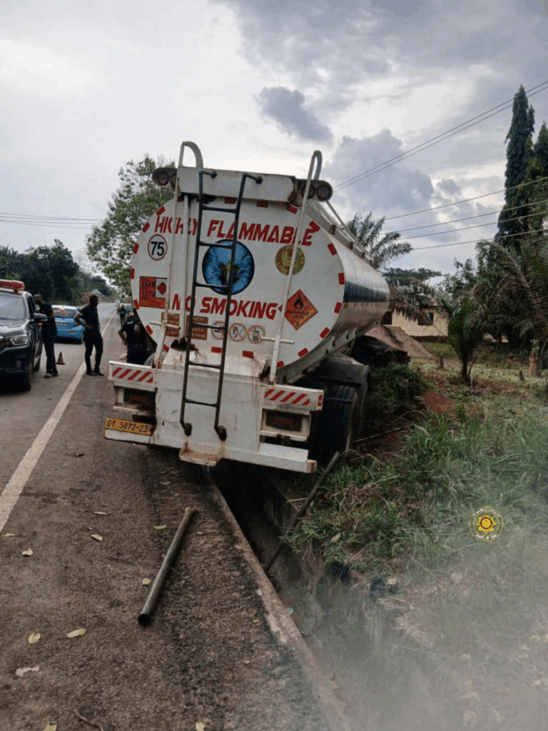 A potential disaster was narrowly averted at Aveme Junction near Anfoega in the Volta Region after a petroleum tanker was involved in a road accident, sparking fears of a possible explosion.