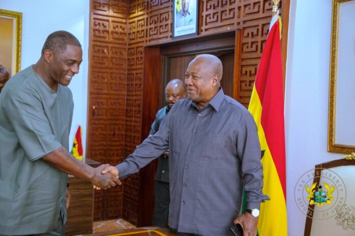 Idris Elba, who is in Ghana, met with President John Mahama at the Jubilee House and expressed his commitment to bringing the film industry back to Africa and promoting African stories.