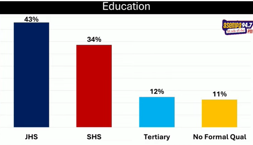 Speaking on Asempa FM’s Ekosii Sen show, Mr. Dankwah explained that a recent survey indicated that about 43% of delegates have JHS as their top qualification, while 11% have no formal education.