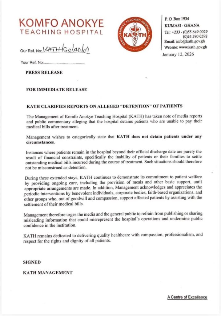 The Komfo Anokye Teaching Hospital (KATH) in Kumasi has dismissed claims that it detains patients who are unable to pay their medical bills.