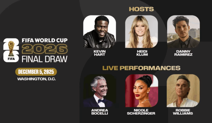 FIFA today unveiled the world-class entertainment line-up for the show to be held for the Final Draw for the FIFA World Cup 2026™, which is set to take place at the historic John F. Kennedy Center for the Performing Arts in Washington, DC, at 12:00 ET (18:00 CET) on Friday, 5 December 2025.