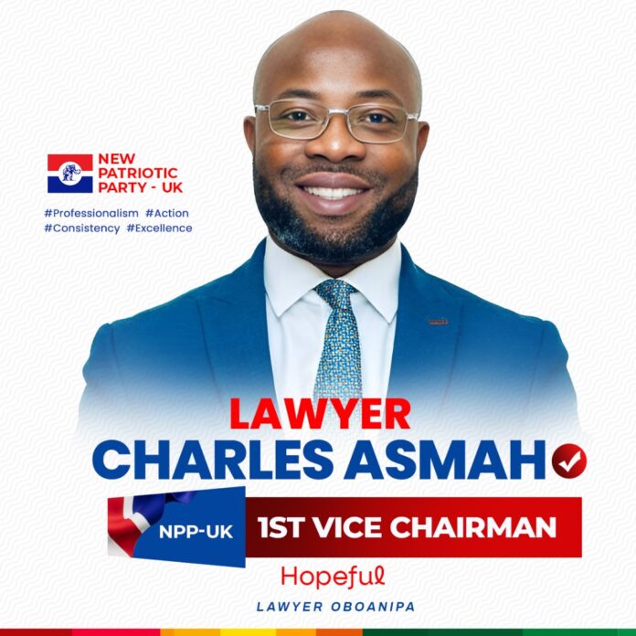 Lawyer Charles Asmah has formally declared his intention to contest for the position of First Vice Chairman of the New Patriotic Party’s UK chapter (NPP-UK), calling on members across all branches to support his bid based on years of dedicated service and proven leadership.