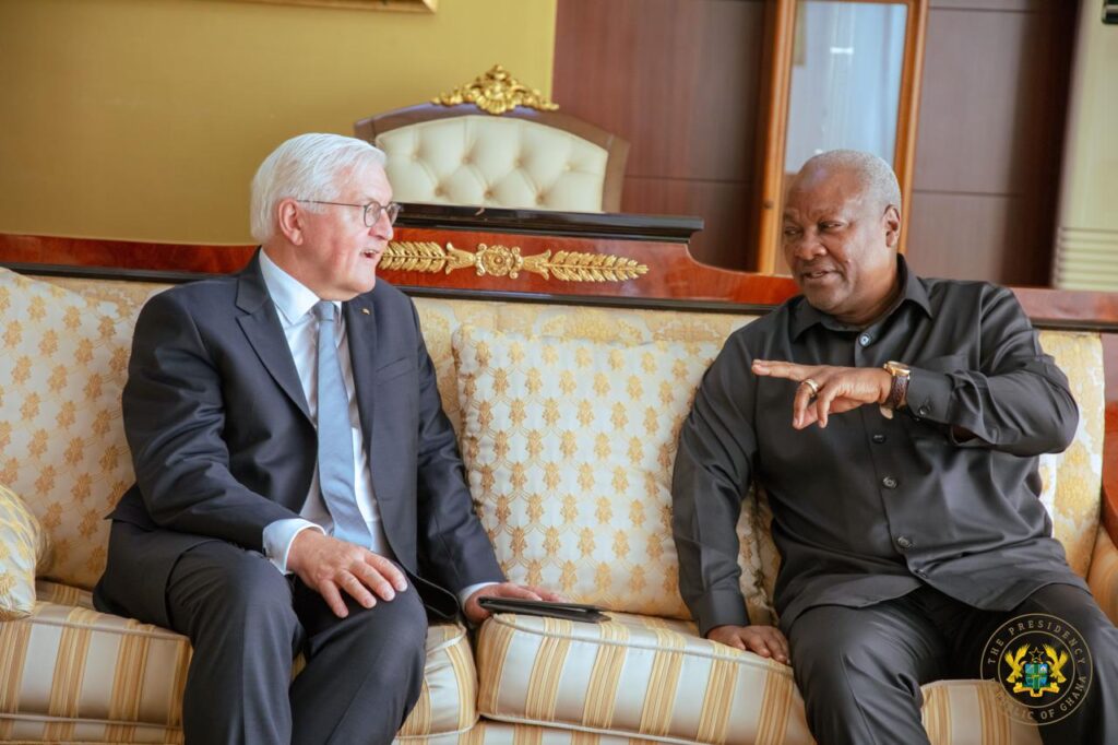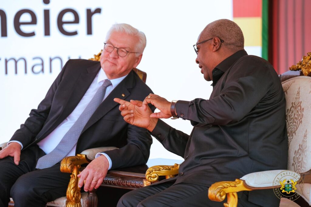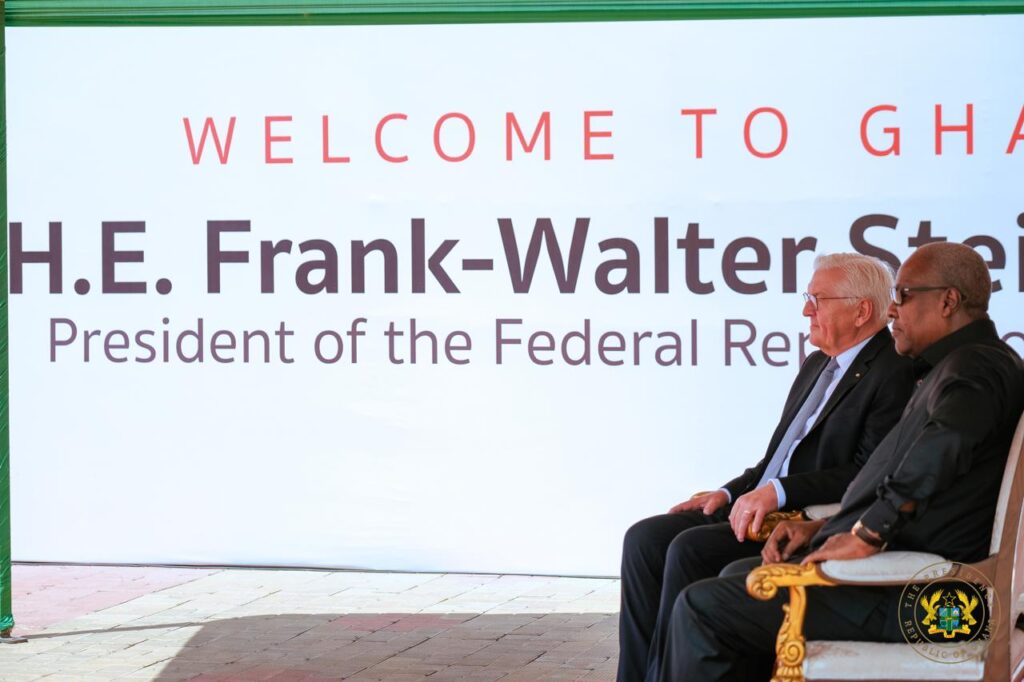 President John Dramani Mahama on Monday, November 3, 2025, welcomed the President of the Federal Republic of Germany, Frank-Walter Steinmeier, to the Jubilee House as part of his three-day state visit to Ghana.