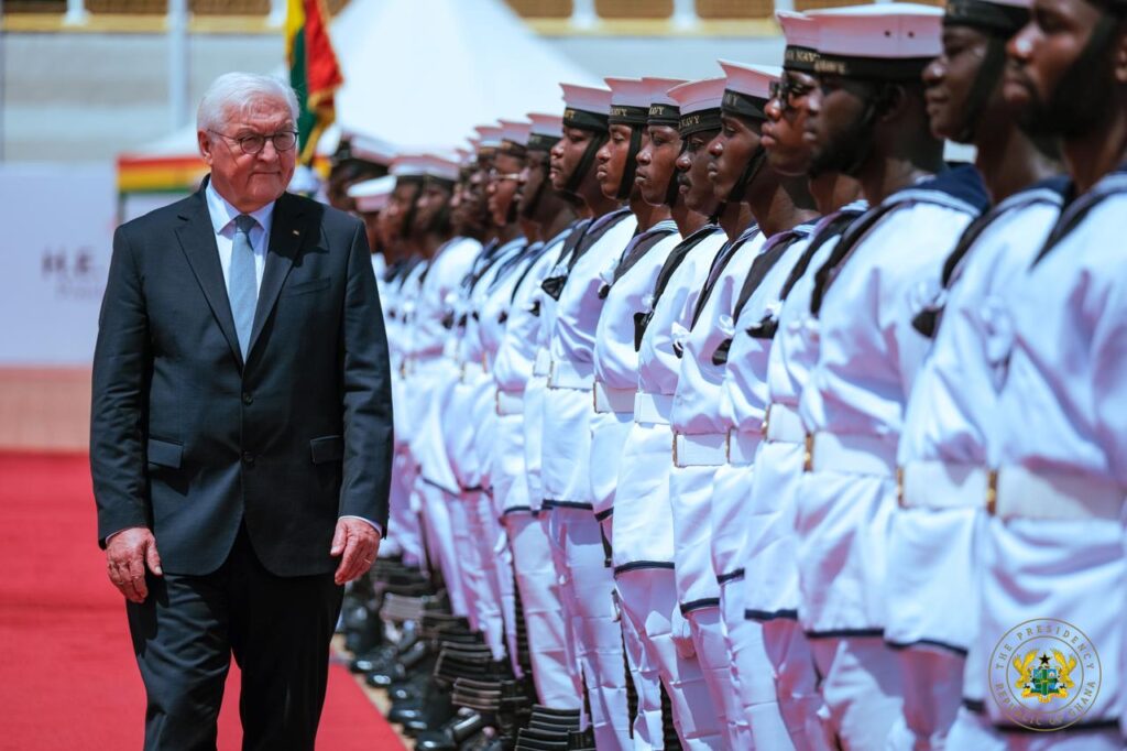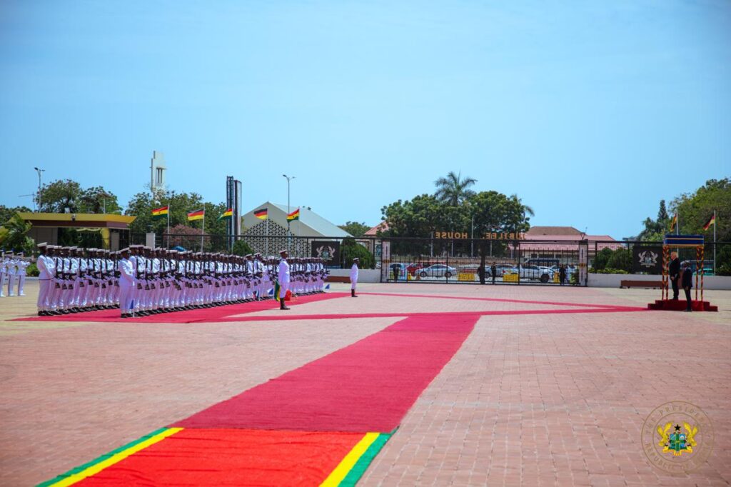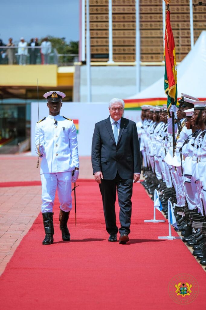 President Steinmeier was received with a full military Guard of Honour at the Forecourt of the Presidency, a ceremonial gesture highlighting Ghana’s commitment to deepening bilateral relations with Germany.