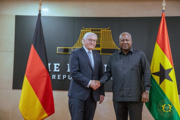 President John Dramani Mahama on Monday, November 3, 2025, welcomed the President of the Federal Republic of Germany, Frank-Walter Steinmeier, to the Jubilee House as part of his three-day state visit to Ghana.