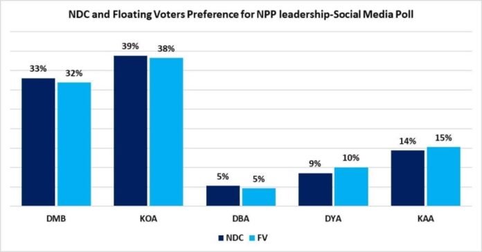 Sharing the findings in a Facebook post, the Executive Director of Global InfoAnalytics, Musa Dankwa, wrote: “The social media poll shows majority of NDC voters and floating voters now prefer Hon. Kennedy Agyapong to Dr Bawumia, contrary to previous polling data.”