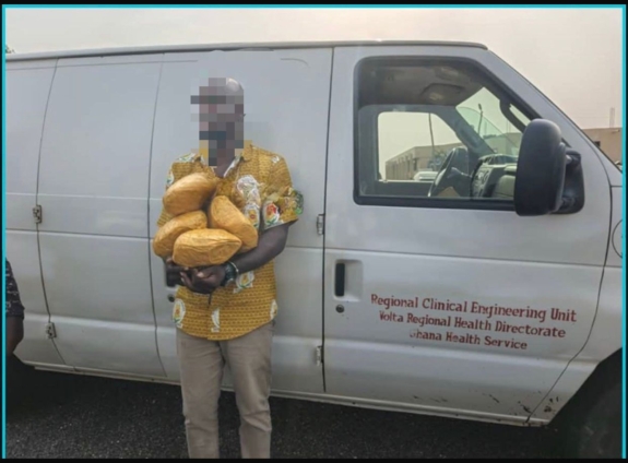 In a statement, the Police explained that a vehicle with registration number GV 2460-14, which is registered to the Ghana Health Service, was intercepted close to Tarso Hotel in Ho after the driver allegedly failed to comply with a stop signal at the OLA Top checkpoint.