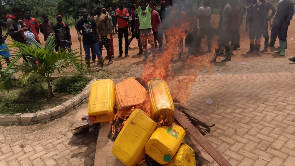 Hundreds of residents participated in a street protest dubbed “Yɛɛgye y’asaase” to wit “We are taking over our lands”, calling on the government to withdraw military personnel from their community to promote peace.