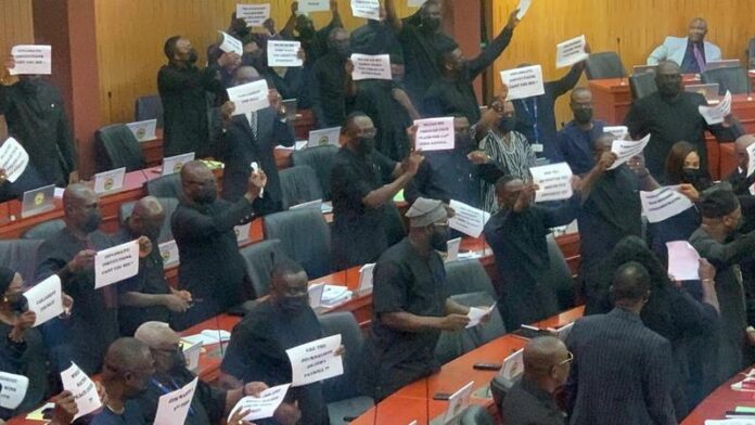 The Minority, led by the Chief Whip, Frank Annoh-Dompreh, read an urgent statement on the floor of Parliament, indicating that the act by the House amounts to selectivity of justice.