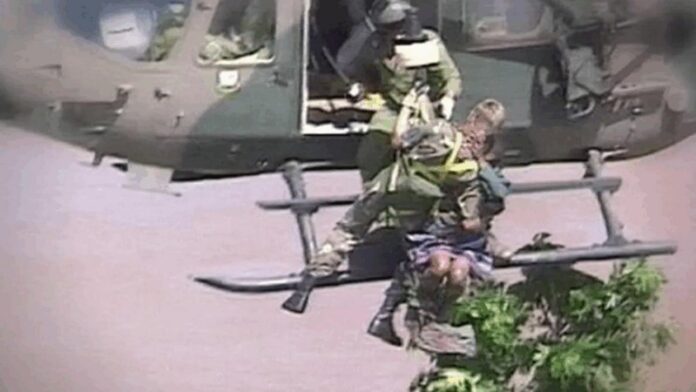 The sight of the newborn and her mother being winched to safety by helicopter amid the deluged landscape became one of the defining images of the Mozambique floods of 2000 – the country’s worst ever.