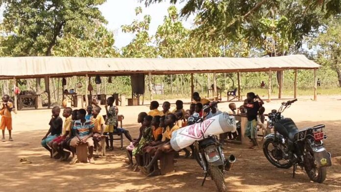 The school lacks proper classrooms and furniture, forcing pupils to hold lessons outdoors under trees, sitting on stones, or directly on the ground. A visit by Adom News revealed that this inadequate infrastructure is hampering students’ academic progress.