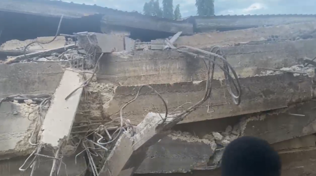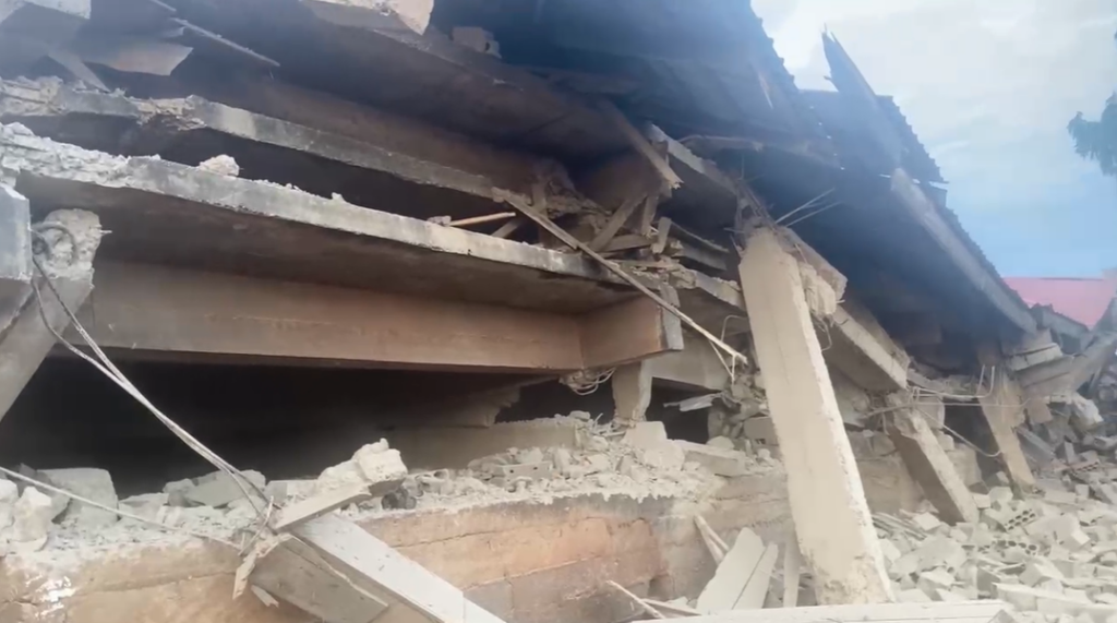 The building, believed to be a school, caved in under circumstances yet to be confirmed.