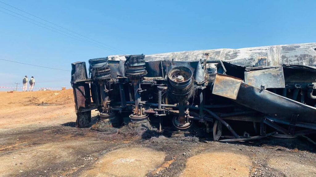 The explosion occurred around 5:50 a.m. when a Staroil fuel tanker carrying about 54,000 litres of petrol veered off the road and fell near a chop bar where there was an open flame. The impact triggered a massive fire, destroying several structures in the area.