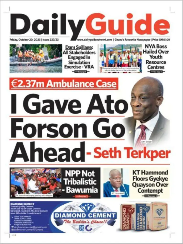 Newspaper headlines: Friday 20th October 2023 Newspaper Headlines October 20, 2023 8:03 am - Audio By Carbonatix FacebookWhatsAppTwitterTelegramEmailPinterestPrint Previous articleDonate your second offerings to Akosombo Dam spillage victims – NYA to churches, MosquesNext articleStop politicising Akosombo dam spillage crisis – Rev. Opuni-Frimpong RELATED ARTICLES Newspaper Headlines Newspaper headlines: Monday, November 24, 2025 Newspaper Headlines Newspaper headlines: Friday, November 21, 2025 Newspaper Headlines Newspaper headlines: Thursday, November 20, 2025