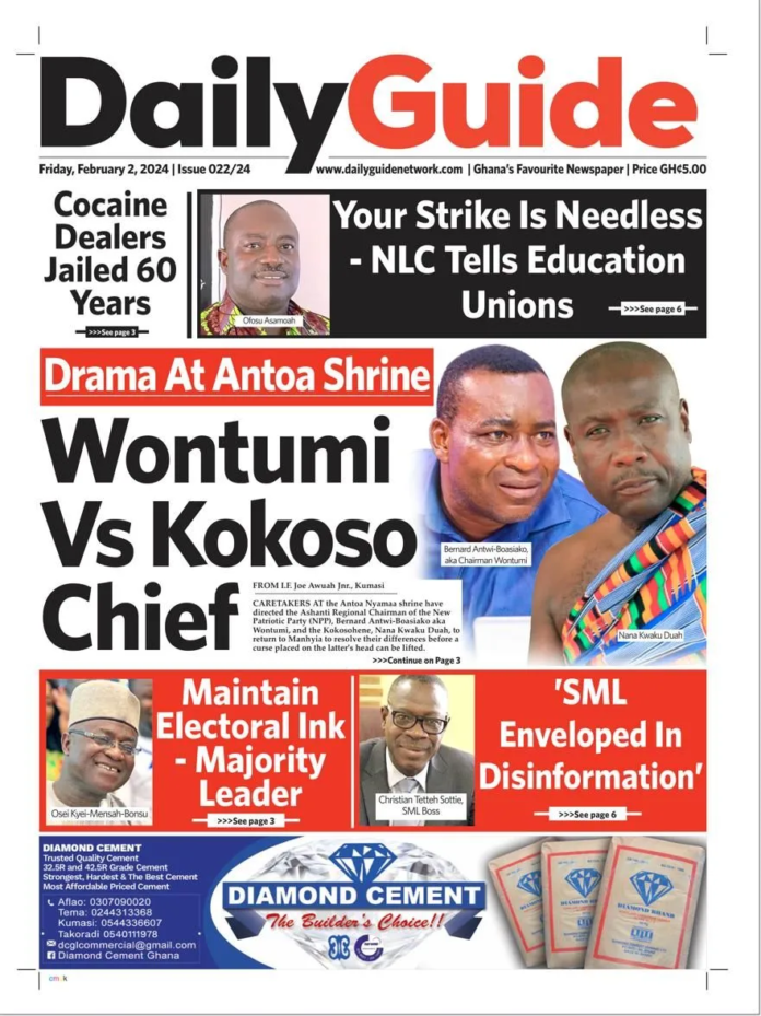 Newspaper headlines: Friday 2nd February 2024 Newspaper Headlines February 2, 2024 6:35 am - Audio By Carbonatix FacebookWhatsAppTwitterTelegramEmailPinterestPrint Previous article4 sentences every successful couple has memorisedNext articleAkufo-Addo is the best president NPP has produced – Asenso-Boakye TagsNewspaper headlines RELATED ARTICLES Local News Asantehene demands enforcement of law recognising Naba Azoka II as Bawku Chief Local News Government to issue position on Bawku peace mediation report within 24 hours Local News Bryan Acheampong says Bawumia is his biggest competitor in NPP race