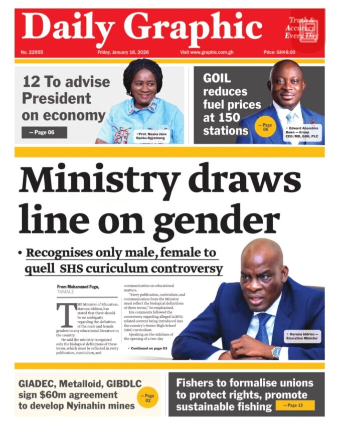 Newspaper headlines: Friday, January 16, 2026 Newspaper Headlines January 16, 2026 7:11 am - Audio By Carbonatix FacebookWhatsAppTwitterTelegramEmailPinterestPrint Previous articleGhana’s IMF Programme remains solid and on track – IMF Resident RepNext articleFiscal discipline, cedi stability made 2025 a ‘very good year’ – IMF TagsNewspaper headlines RELATED ARTICLES Local News Police officers brutally assault Energy Ministry staff at Amanfrom [Video] Business GOIL PLC reduces fuel prices at stations to ease cost of living Local News Ofori-Atta overstayed his visa – ICE labels Former Finance Minister as “illegal alien”