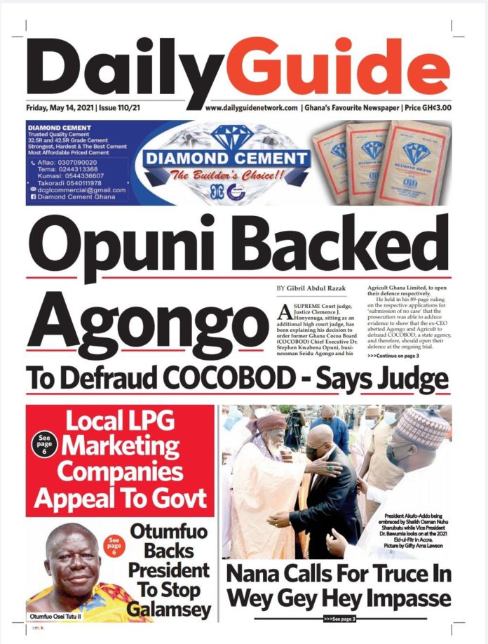 Newspaper Headlines: Friday, May 14, 2021 Newspaper Headlines May 14, 2021 8:02 am - Audio By Carbonatix FacebookWhatsAppTwitterTelegramEmailPinterestPrint Previous article7 weird things men find attractive in womenNext articleDzata cement clears air on projected price of its cement RELATED ARTICLES Newspaper Headlines Newspaper headlines: Monday, November 24, 2025 Newspaper Headlines Newspaper headlines: Friday, November 21, 2025 Newspaper Headlines Newspaper headlines: Thursday, November 20, 2025