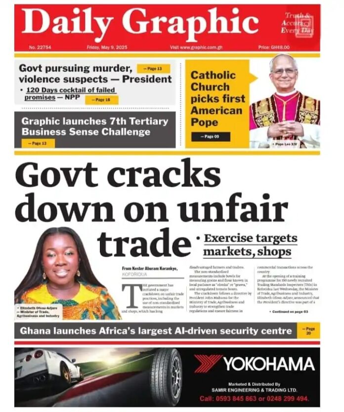 Newspaper headlines: Friday, May 9, 2025 Newspaper Headlines May 9, 2025 9:24 am - Audio By Carbonatix FacebookWhatsAppTwitterTelegramEmailPinterestPrint Previous articleThe fundamentals haven’t changed – Lecturer cautions against cedi hypeNext articleDon’t celebrate cedi gains if… – Prof. Baah Boateng RELATED ARTICLES Nigeria Nigeria’s House to look into row between regulator and Dangote over fuel imports, pricing News Ned Nwoko responds to Regina Daniels’ claims of separation from children News Three friends jailed for a total of 27 years for stealing