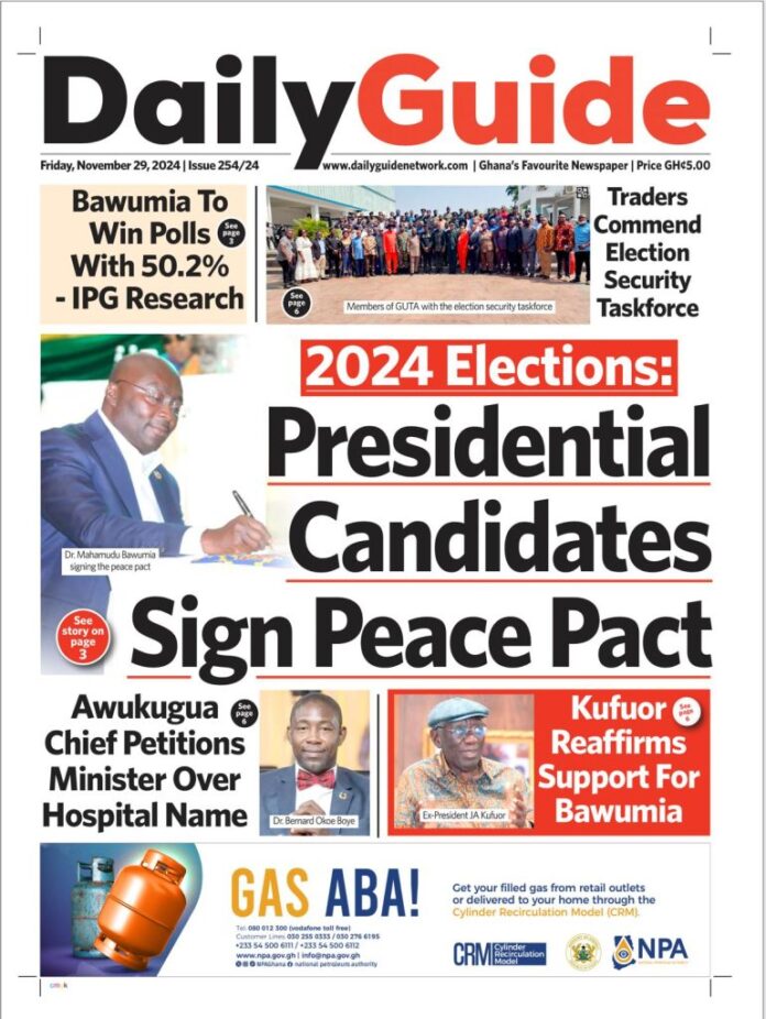 Newspaper headlines: Friday, November 29, 2024 Newspaper Headlines November 29, 2024 7:47 am - Audio By Carbonatix FacebookWhatsAppTwitterTelegramEmailPinterestPrint Previous articleWe cannot afford business as usual on debt management – AGI tells incoming gov’tNext articleBritish High Commissioner lauds peace pact, reaffirms UK’s support for Ghana’s democracy TagsNewspaper headlines RELATED ARTICLES News Sam Jonah seeks Ablakwa’s intervention over alleged seizure of investments in Nigeria Local News Lands ministry engages Ewoyaa chiefs, residents in successful lithium agreement talks News Kwesi Botchway Jnr requests update from A-G on EOCO galamsey investigations