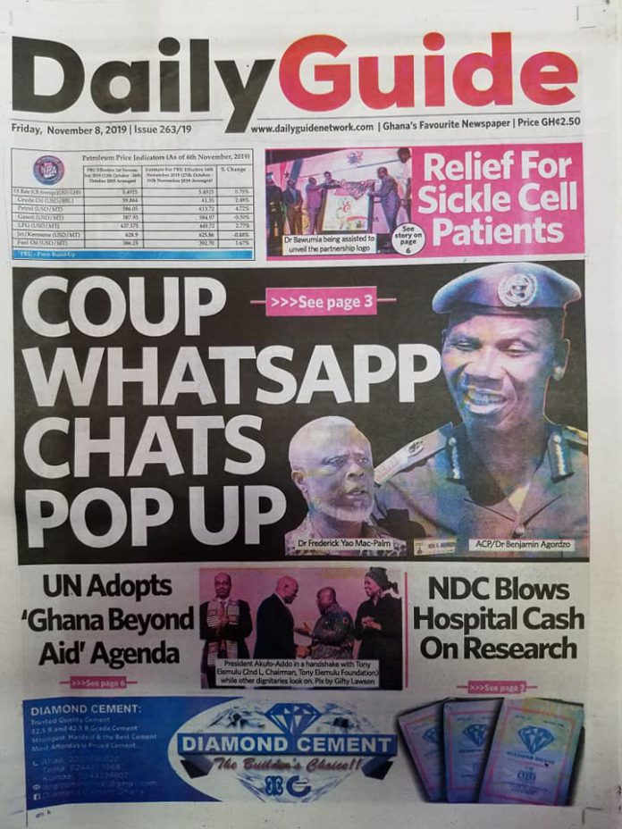 Newspaper Headlines: Friday, November 8, 2019 Newspaper HeadlinesUncategorized November 8, 2019 7:08 am - Audio By Carbonatix FacebookWhatsAppTwitterTelegramEmailPinterestPrint Previous articleApologize or face us in court for slandering Gabby Otchere-Darko – Aide to Sammy GyamfiNext articleManasseh’s book on Mahama’s ‘second coming’ out in 3 weeks RELATED ARTICLES Newspaper Headlines Newspaper headlines: Monday, November 24, 2025 Newspaper Headlines Newspaper headlines: Friday, November 21, 2025 Newspaper Headlines Newspaper headlines: Thursday, November 20, 2025