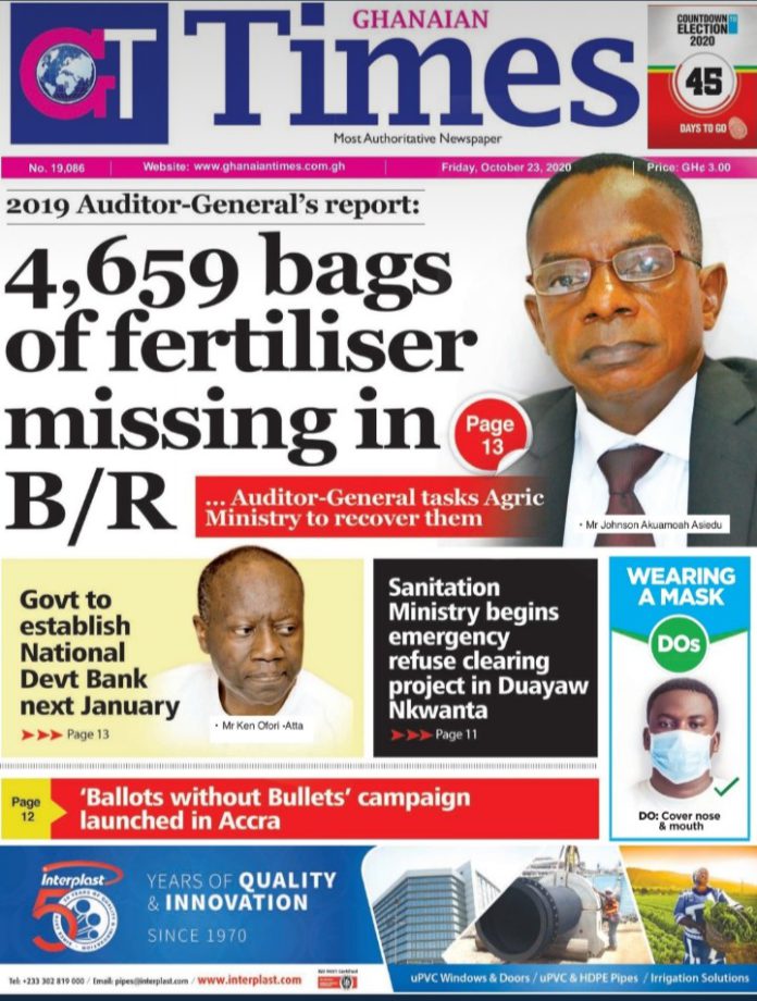 Newspaper Headlines: Friday, October 23, 2020 Newspaper Headlines October 23, 2020 7:08 am - Audio By Carbonatix FacebookWhatsAppTwitterTelegramEmailPinterestPrint Previous articleGive Amantin a district, constituency status – Traditional Council to BawumiaNext articleUnemployed swindles phone dealer at National Police Headquarters RELATED ARTICLES Newspaper Headlines Newspaper headlines: Monday, November 24, 2025 Newspaper Headlines Newspaper headlines: Friday, November 21, 2025 Newspaper Headlines Newspaper headlines: Thursday, November 20, 2025