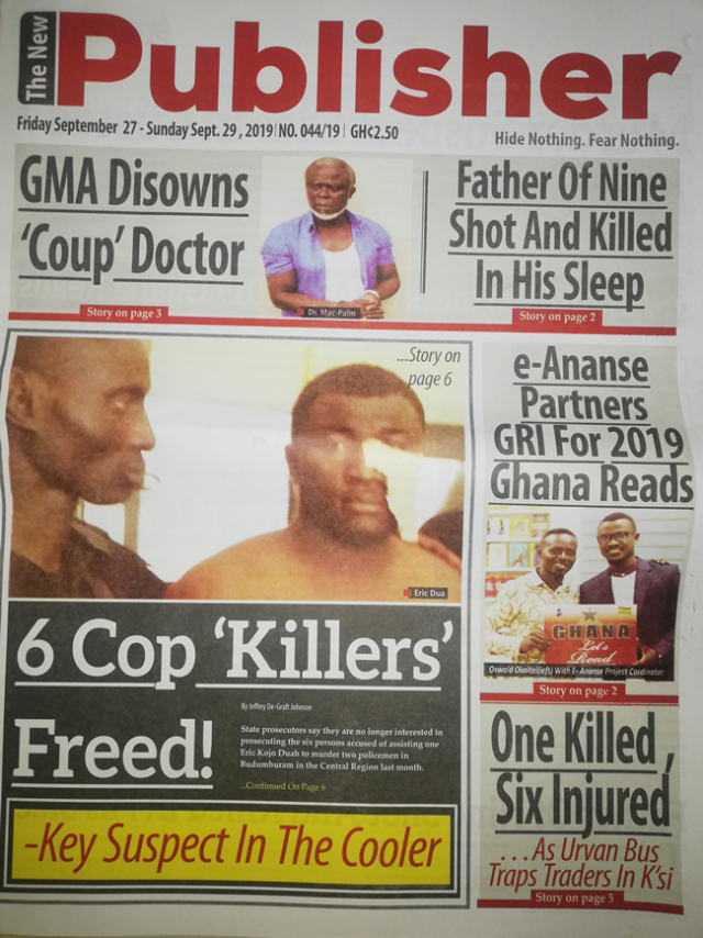 Newspaper Headlines: Friday, September 27, 2019 Newspaper Headlines September 27, 2019 6:53 am - Audio By Carbonatix FacebookWhatsAppTwitterTelegramEmailPinterestPrint Previous articleBaba Jamal support’s govt takeover of Akwatia diamond mineNext article3 alleged Indian hemp peddlers arrested RELATED ARTICLES Newspaper Headlines Newspaper headlines: Monday, November 24, 2025 Newspaper Headlines Newspaper headlines: Friday, November 21, 2025 Newspaper Headlines Newspaper headlines: Thursday, November 20, 2025