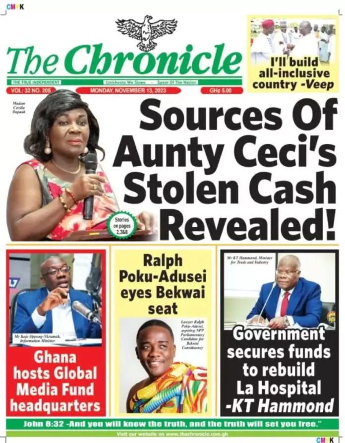 Newspaper headlines: Monday 13th November 2023 Newspaper Headlines November 13, 2023 6:50 am - Audio By Carbonatix FacebookWhatsAppTwitterTelegramEmailPinterestPrint Previous articleWorld Health Organization says Gaza’s main hospital no longer functioningNext articleFour dead, 12 injured in gory accident at Akyem Koforidua TagsNewspaper headlines RELATED ARTICLES Local News Koforidua High Court dismisses petition challenging Suhum MP’s election Local News Banda District to get first-ever NHIS office — DCE assures Local News Agotime-Ziope residents call for protective gear for sanitation volunteers