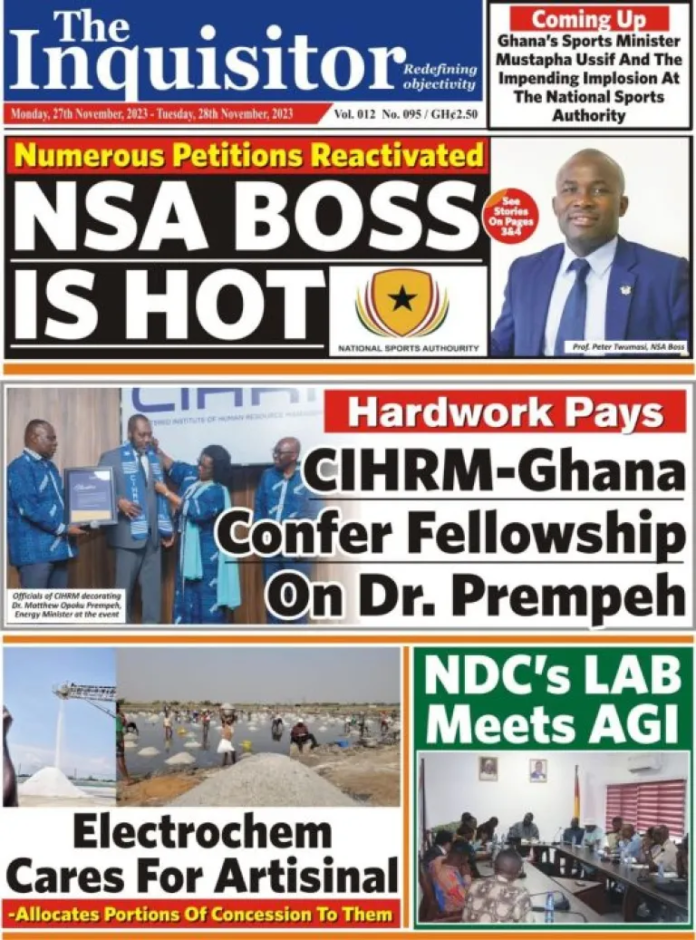 Newspaper headlines: Monday 27th November 2023 Newspaper Headlines November 27, 2023 6:36 am - Audio By Carbonatix FacebookWhatsAppTwitterTelegramEmailPinterestPrint Previous articleAfrica-Europe partnership launches study to evaluate emergency response tools for severe malaria in highly isolated rural settingsNext articlePolitics is a noble calling – Mustapha Hamid TagsNewspaper headlines RELATED ARTICLES Local News NRSA blames theft for breakdown of many traffic lights News Ghana Card to be mandatory for motor insurance from January 2026 Local News ECG promises reliable power supply during holidays