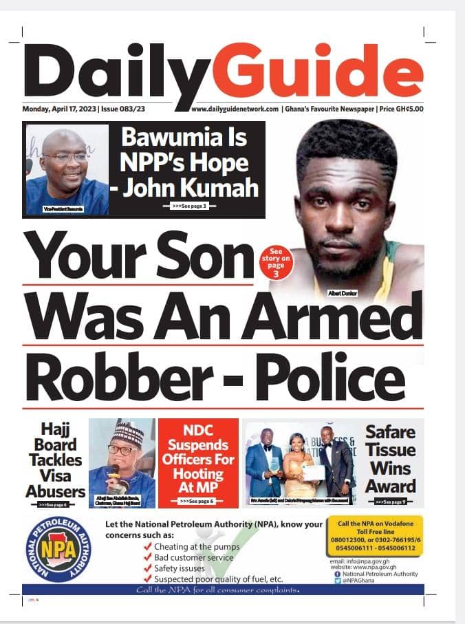 Newspaper Headlines: Monday, April 17, 2023 Newspaper Headlines April 17, 2023 6:53 am - Audio By Carbonatix FacebookWhatsAppTwitterTelegramEmailPinterestPrint Previous article6 feared UFC fighters who entertained us with brutal knockoutsNext articlePL: Man Utd go third with win at struggling Forest RELATED ARTICLES Newspaper Headlines Newspaper headlines: Monday, November 24, 2025 Newspaper Headlines Newspaper headlines: Friday, November 21, 2025 Newspaper Headlines Newspaper headlines: Thursday, November 20, 2025